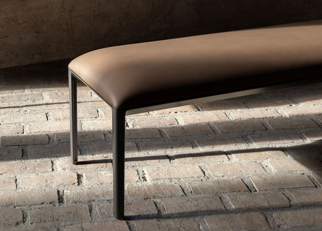 Able is a versatile bench that is comfortable and suitable for both residential and contract applications. Developed to be used as seating with Bensen's collection of Able dining tables, the Able bench is also perfect to use independently. It features a frame in die-cast aluminum with extruded aluminum rails available in a choice of finishes. The seat is composed of multi-density foam that can be upholstered in a wide range of fabric or leather options. This combination of materials makes the Able bench exceptionally lightweight and easily moved about. The Able bench is available in several sizes.
