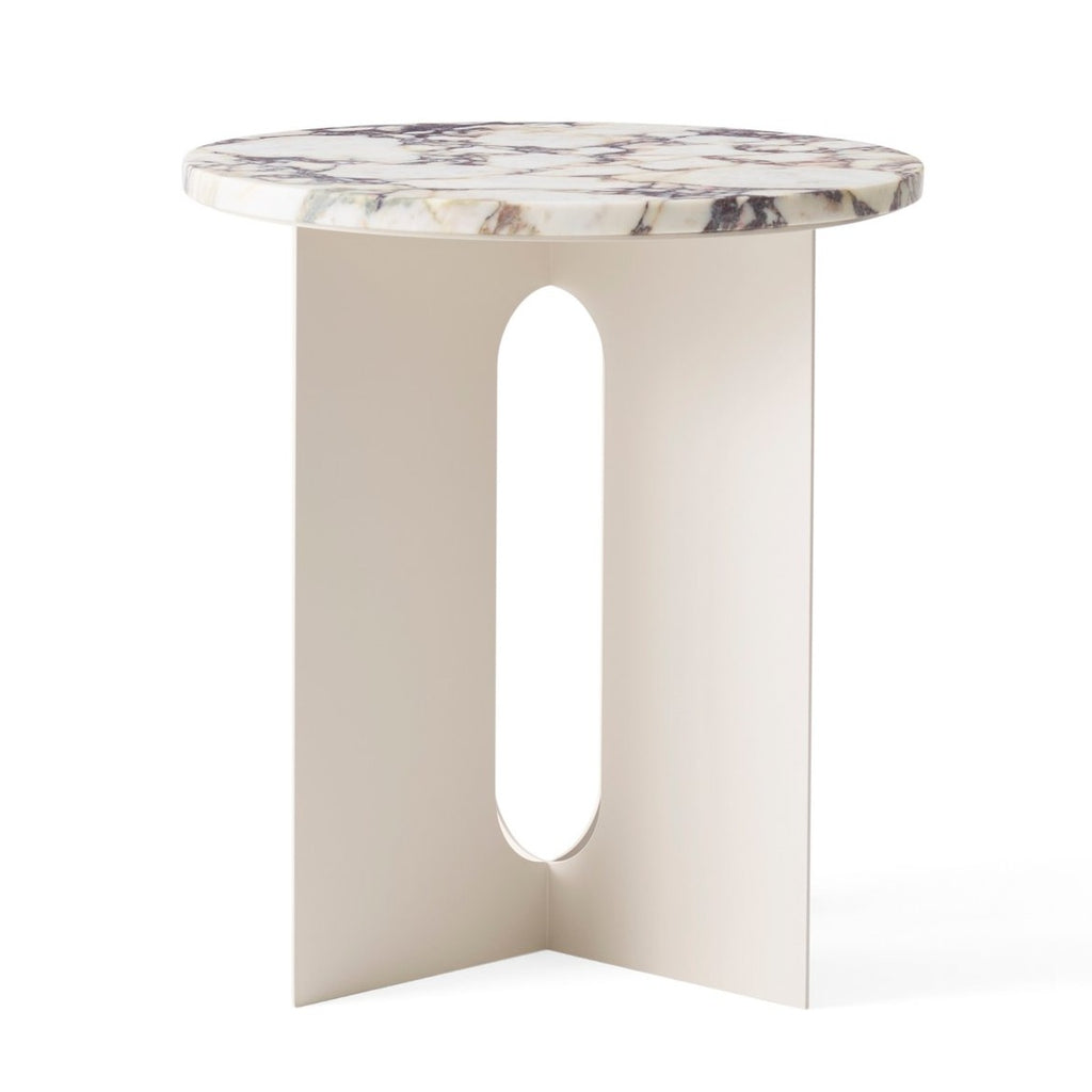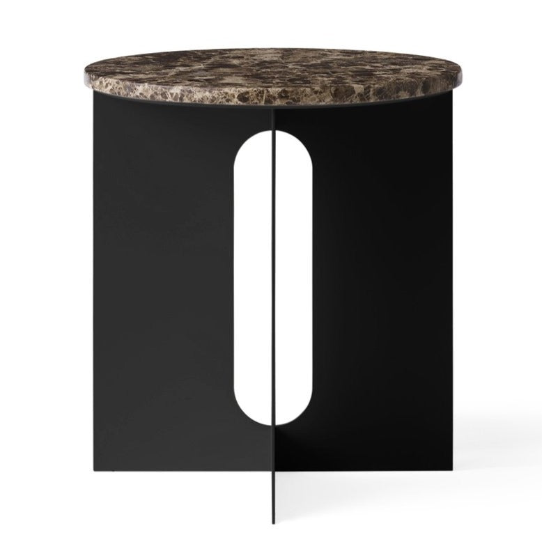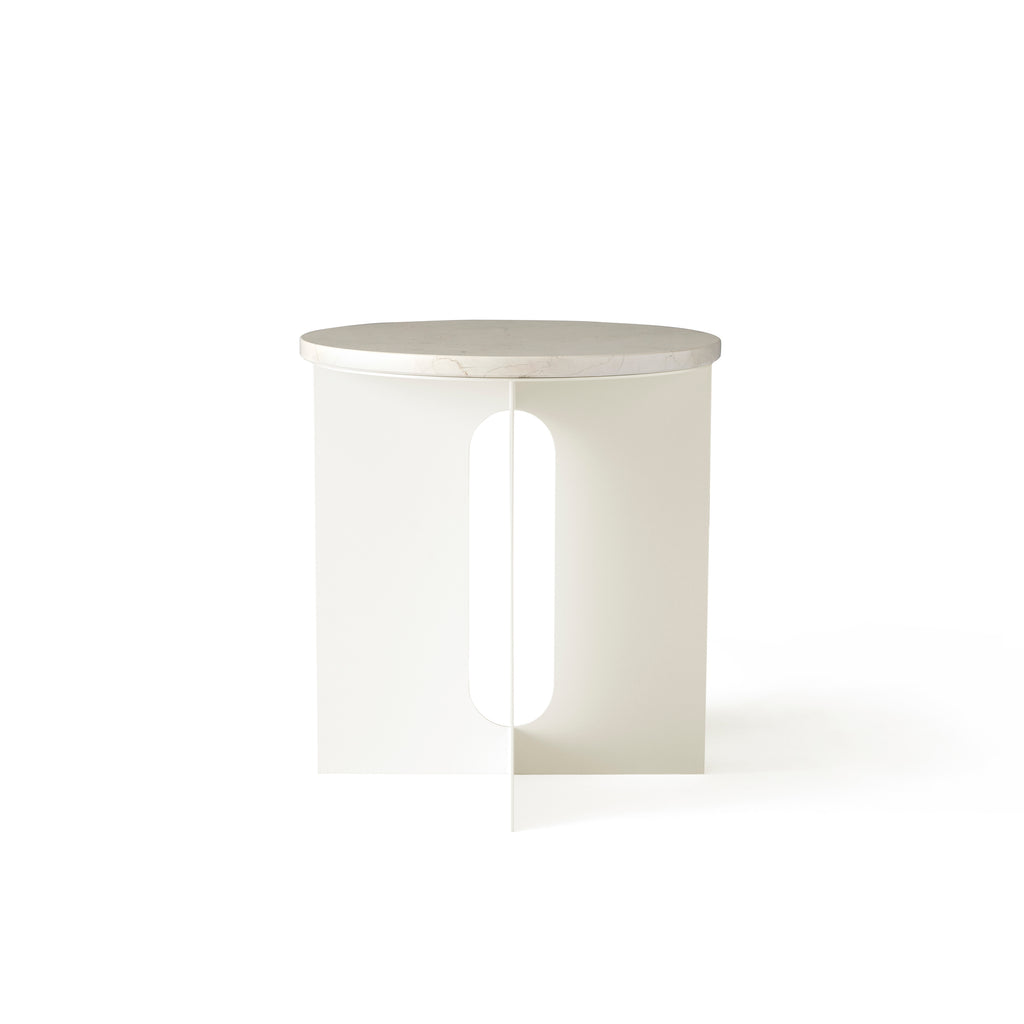 Distinguished by its playful yet elegant silhouette, the Androgyne Side Table was first designed for the Audo Space cafe but quickly went into production for a larger audience. The table’s refined marble top and contrasting wide, flat legs make it an easy fit for a range of décors.