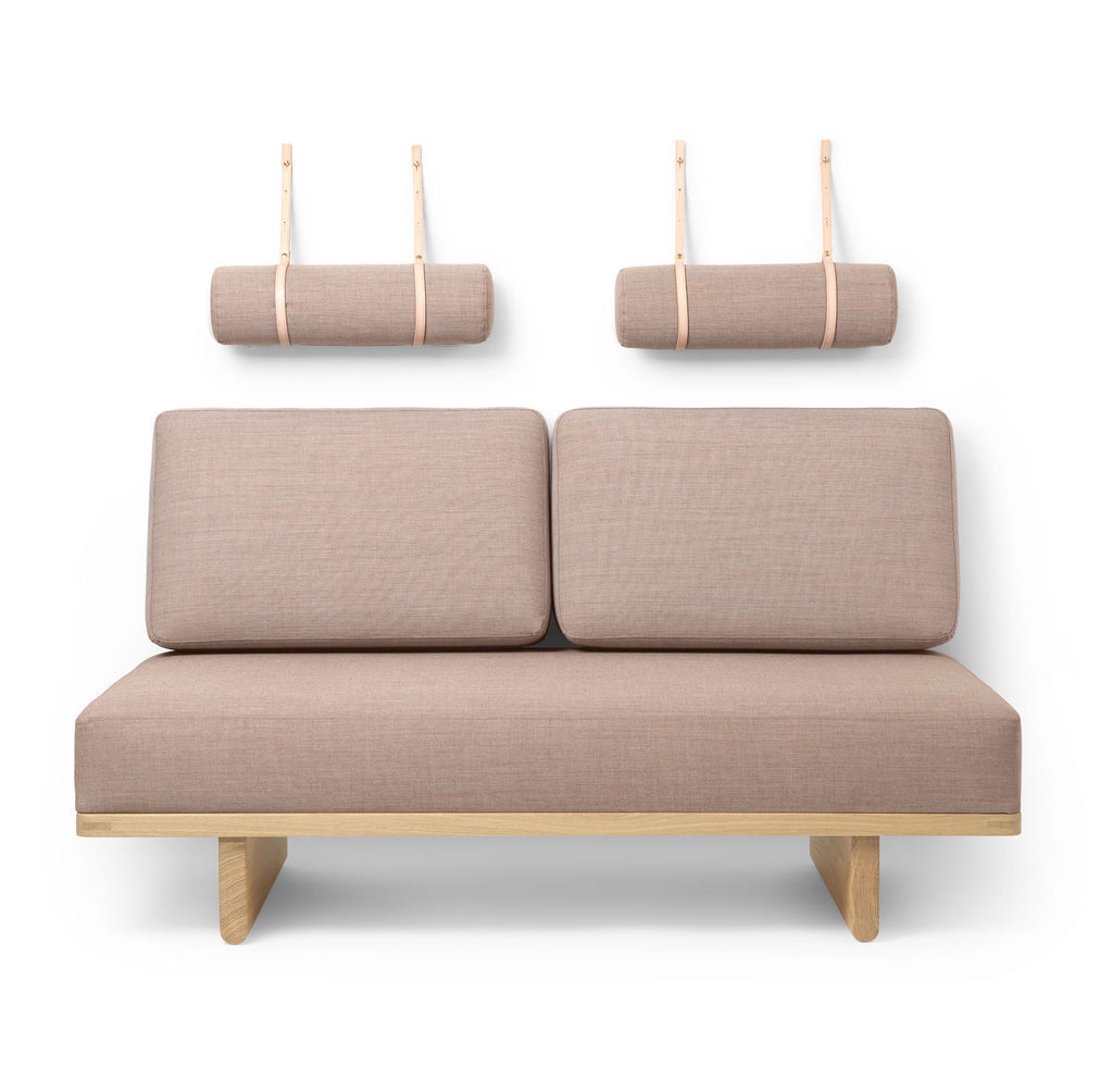 Designed in response to hectic lifestyles, the cylindrical head and armrests, rectangular back pillows and a soft cushion base upholstered with high quality fabric ensure physical comfort, while its tranquil aesthetic is achieved by the simple yet considered design. Set on a solid FSC®-certified oak base and fitted with a comfortable, padded seat, cylindrical head- and armrests and rectangular back pillows, the BM0856 Daybed is a remarkable example of Børge Mogensen’s free thinking and perception of the optimal furniture piece for relaxation. The rounded, calm lines of the timeless design fit perfectly into the Carl Hansen & Søn portfolio of carefully crafted furniture – and seamlessly into any modern space.