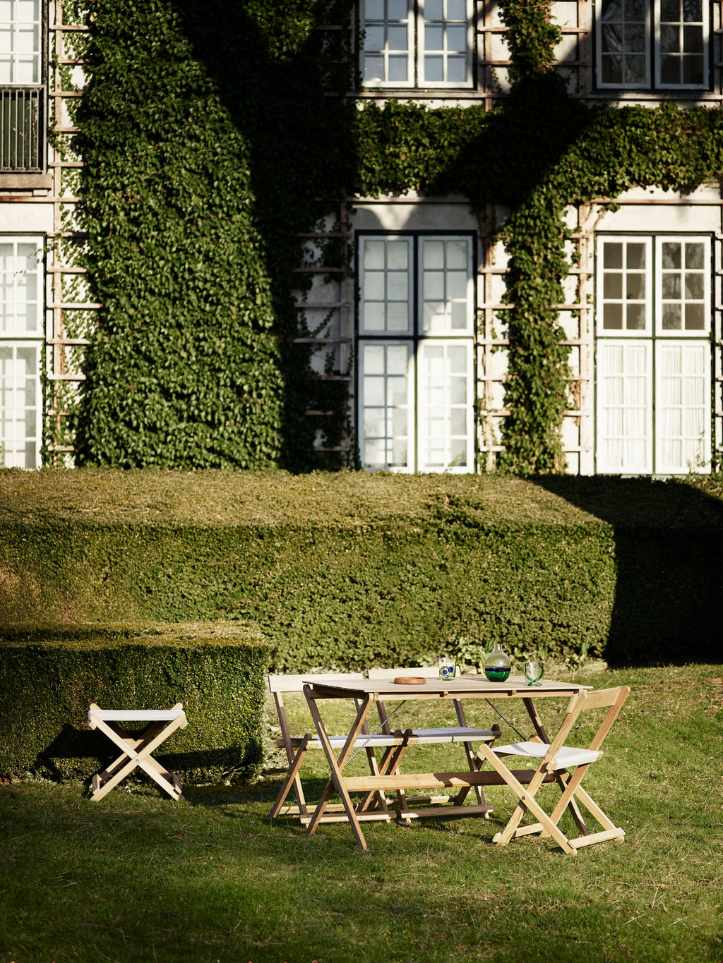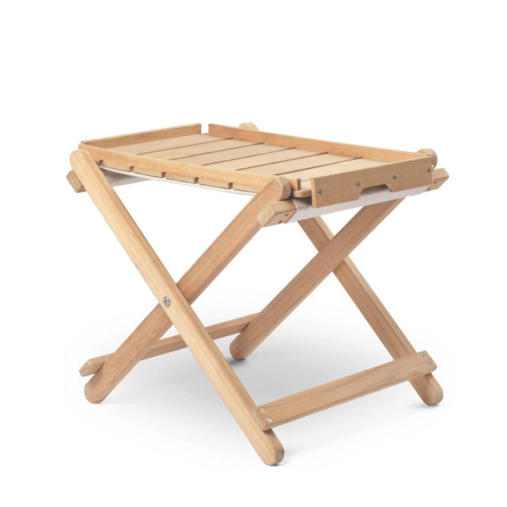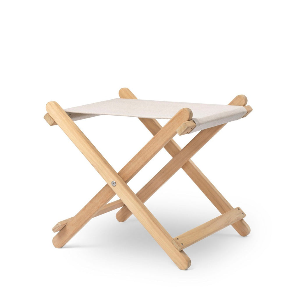 The BM5768 Footstool was designed in the late 1960s by Danish furniture designer Børge Mogensen as part of the Deck Chair Series of beautifully crafted outdoor furniture in solid, untreated, FSC™-certified teak. Perfectly proportioned to match the height of the series’ deck chair, the suspended seat of the foldable BM5768 Footstool is upholstered in weatherproof Sunbrella fabric, chosen for its natural look and easy cleaning. Can ideally be parred with BM1069 tray in solid Teak to create an inviting outdoor table.