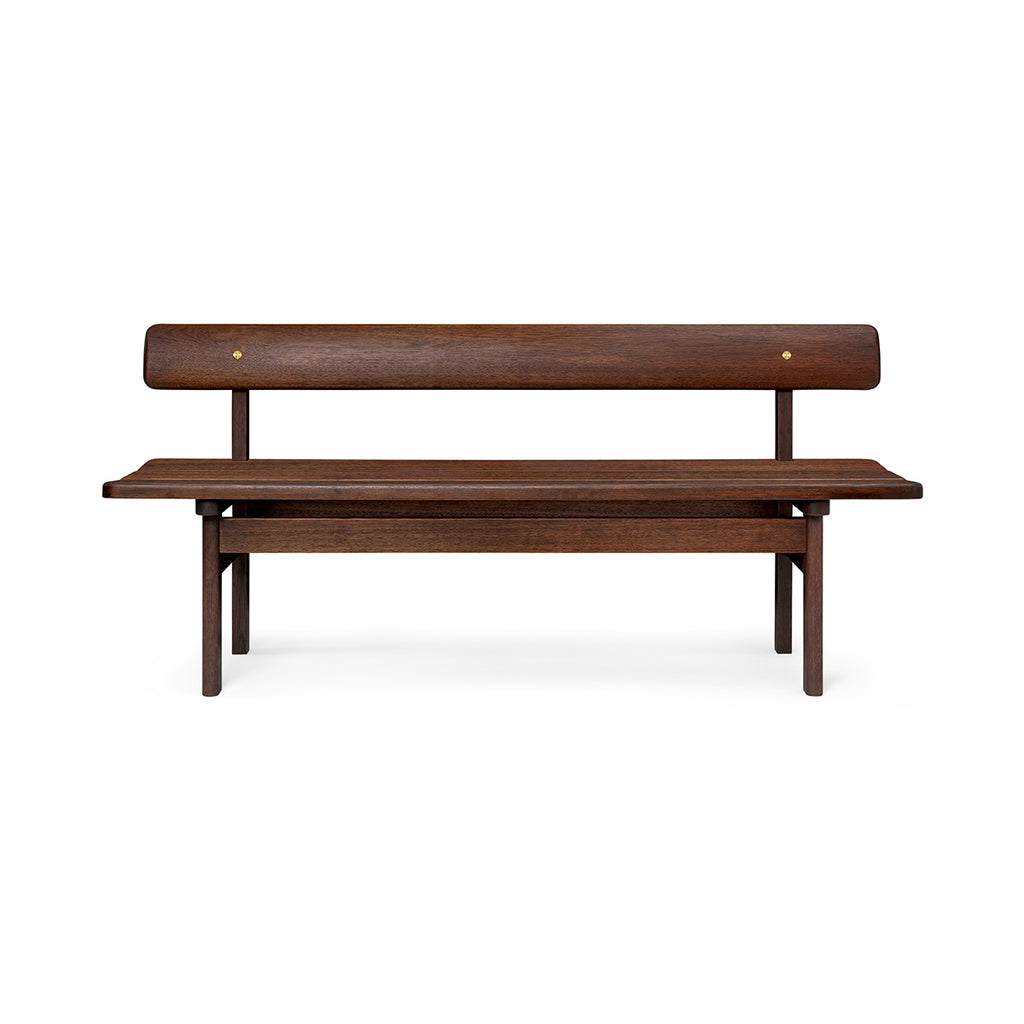 Børge Mogensen’s Asserbo Series comprises a table and bench made of solid, dark-oiled eucalyptus, and the series exudes a stringent, stylistically consistent design. The rounded shapes and visible screws of brushed brass give the series an informal aesthetic, and the visual clarity and strong structure clearly alludes to the Shaker style where Mogensen has let the materials speak for themselves.