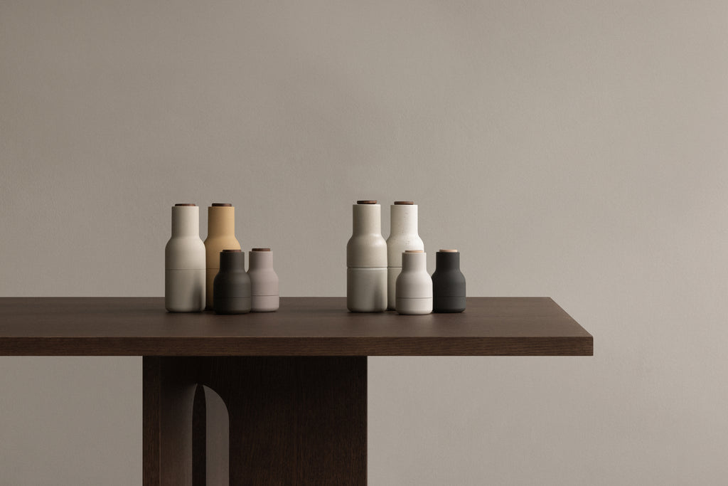 The unique, inverted design ensures that whatever you fill them with only sprinkles out when you grind, leaving no trace on the table or in the kitchen. The Grinders have a bottle-like shape, which is also important to the whole experience. Designer Kasper Rønn, “From a shape like this, you’d expect the content to be something liquid like oil or dressing, you’re not at all expecting dried up spices or nuts. We used this shape to surprise and somewhat trick the users. Sometimes people need a bit of a surprise in order to change their habits”. Audo Bottle Grinders have a rounded base that fits perfectly into the hands, and have a rubber surface that’s easy to grip and to clean. They come in a range of beautiful, soft Scandinavian colours. Bon appétit.