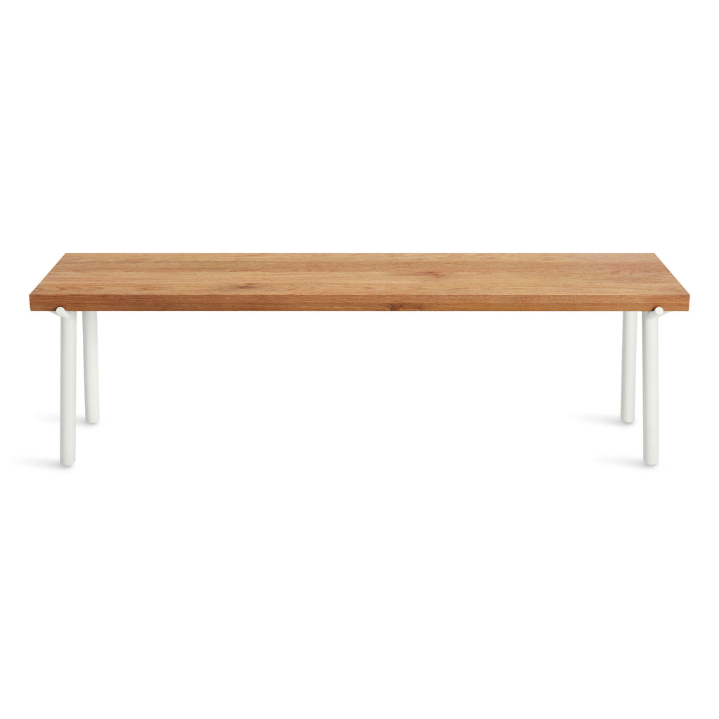 Sculptural powder-coated steel legs handsomely prop up solid wire-brushed oak. Pair with the Branch Table, a different dining table, or use this versatile bench in your entryway.