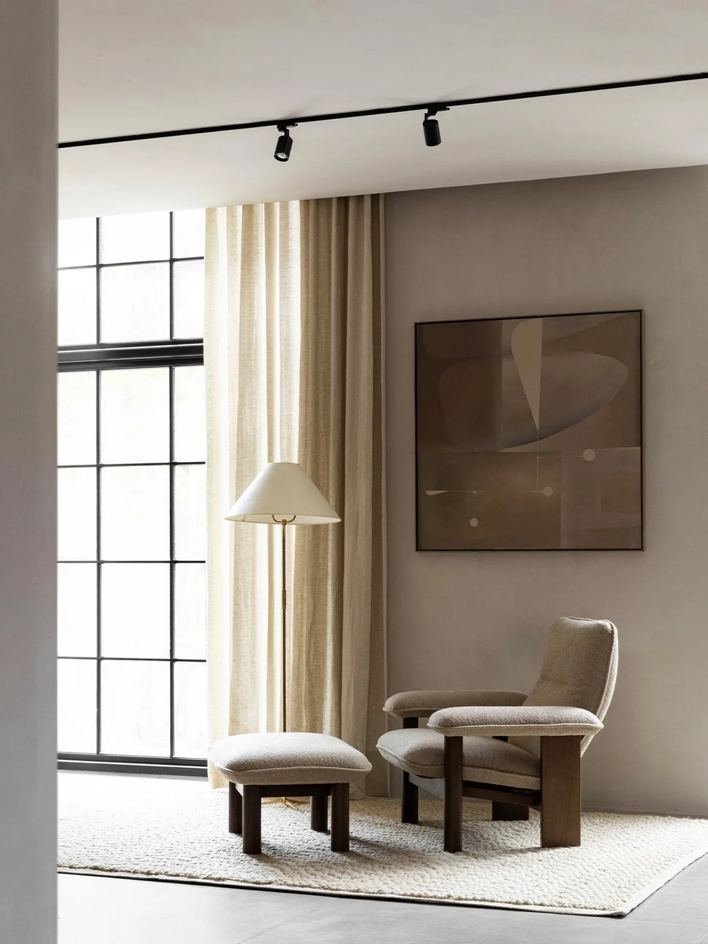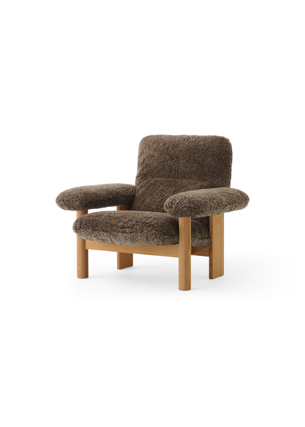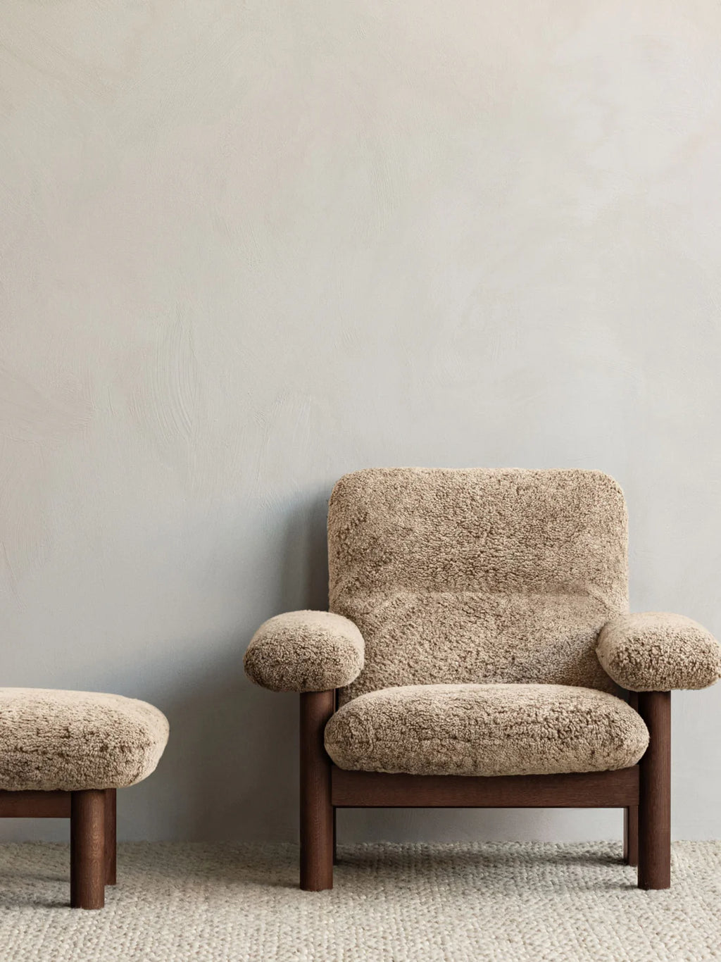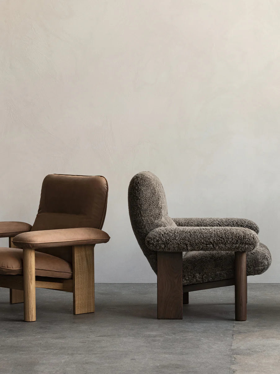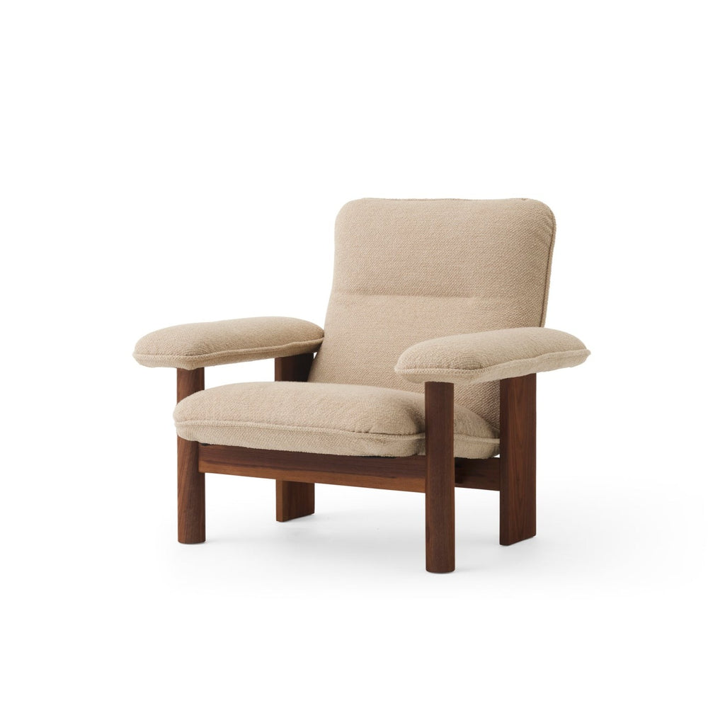 Scandinavian mid-century design aesthetics and Brazilian Modernism meet on the low-lying Brasilia Lounge Chair, designed for Audo by Anderssen & Voll. The luxurious armchair-lounge chair hybrid offers unparalleled sitting comfort thanks to its robust frame and soft upholstery. Characterized by its stout and sturdy legs, made using traditional joinery techniques, and exaggerated armrests and cushioning seat and backrest, upholstered in a range of soft fabrics, it creates a sense of comfort and ease in any setting.
