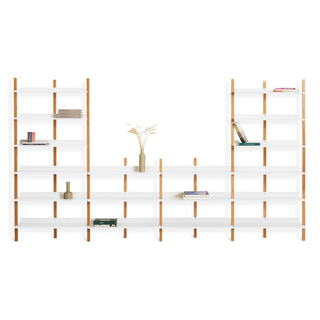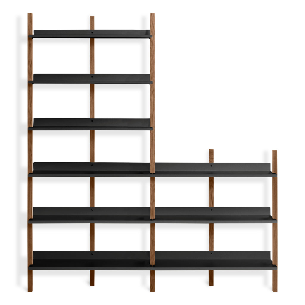 Be your own search engine. Browser is a wall-mounted shelving system designed to be a capable solo unit or added to (endlessly) as needed. With wood uprights and steel shelves, Browser can accommodate piles of vinyl, books galore, and multitudinous collections.