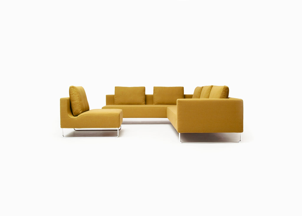 Canyon has a characteristic seat-scoop that holds cushions and bolsters in place. With its sled legs and clean lines, Canyon is perfect for home or contract use.