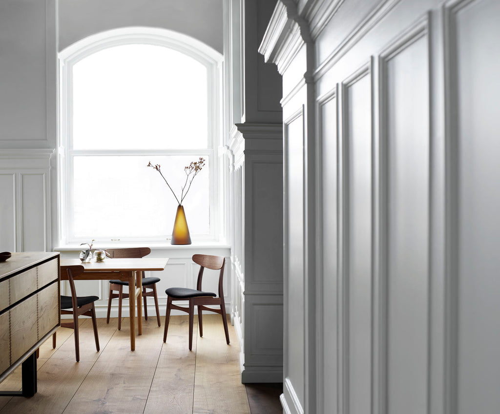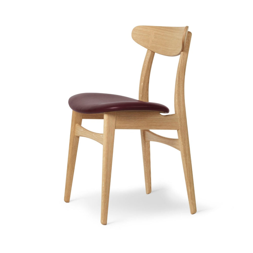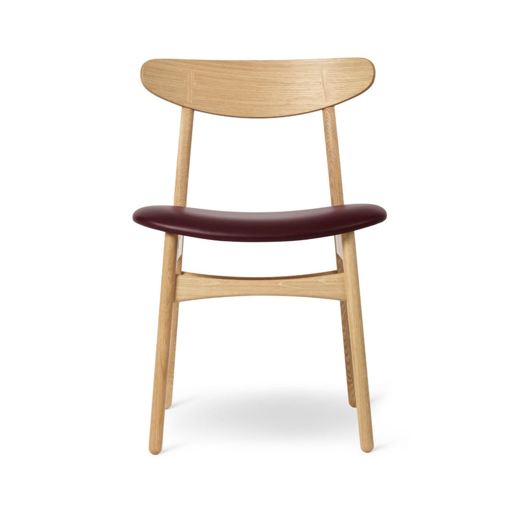 The CH30 is crafted in oak or walnut in various finishes and features a padded seat upholstered in either leather or fabric.