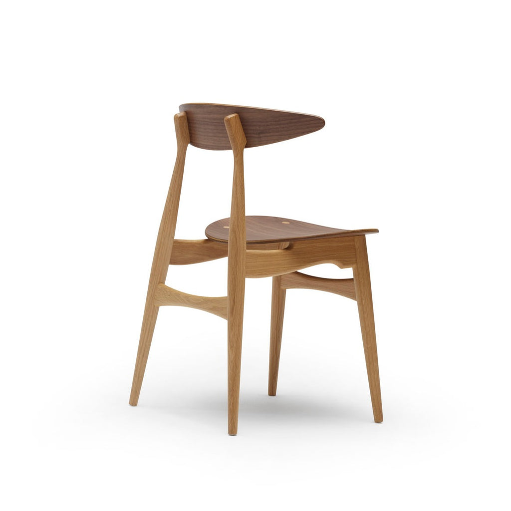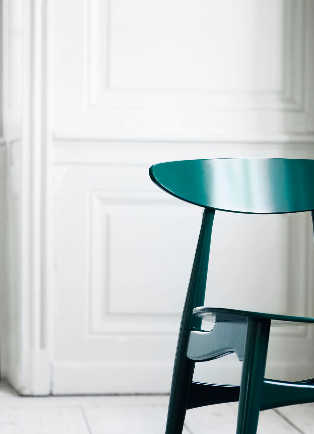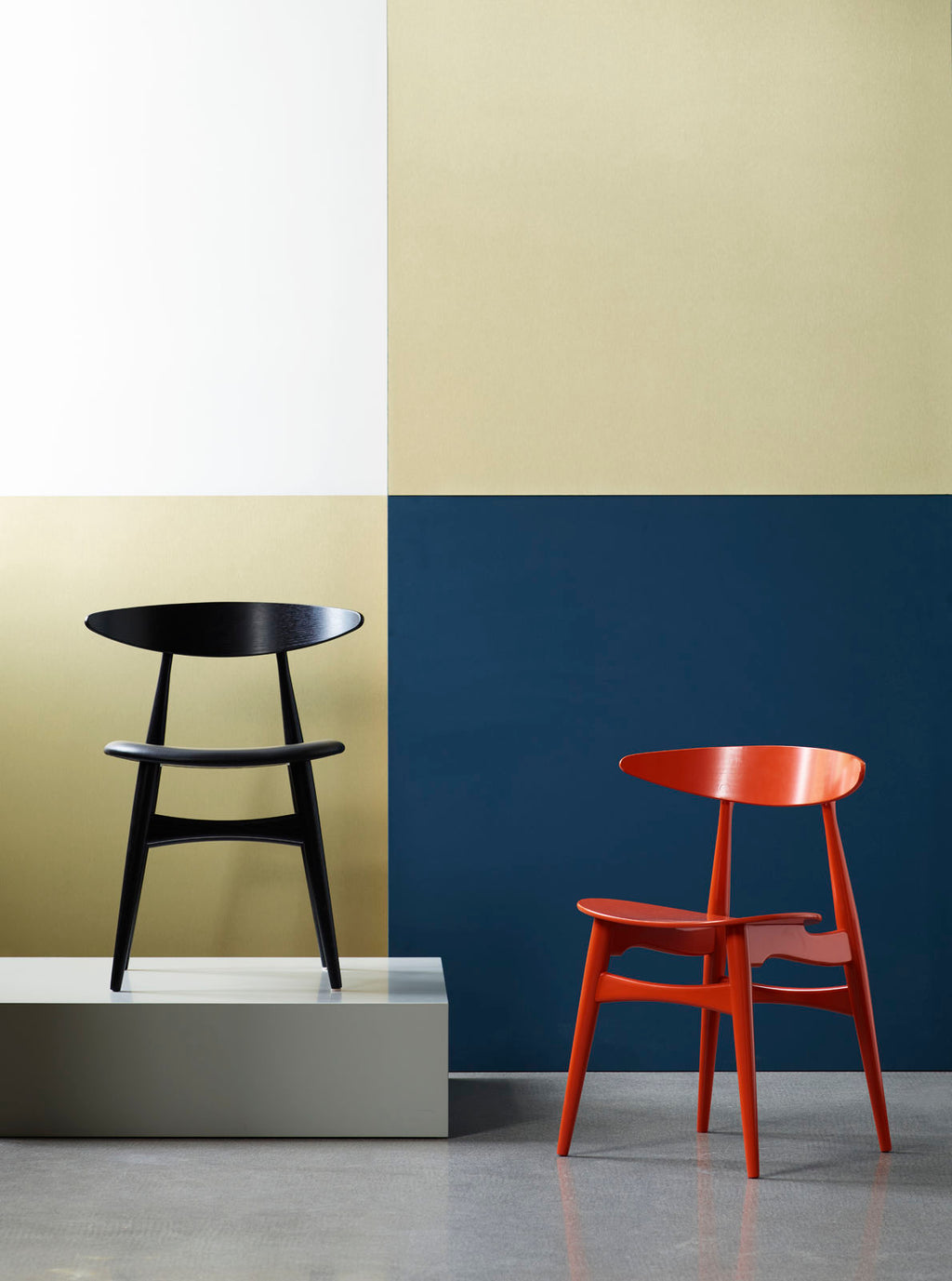 The CH33T has clear references to the clean lines of the 1950s and 1960s and a beautiful wood construction in solid wood. With its warm, human feel, the CH33T is an ideal fit for contemporary interiors. The CH33P version allows for even more comfort with seat upholstery in fabric or leather.