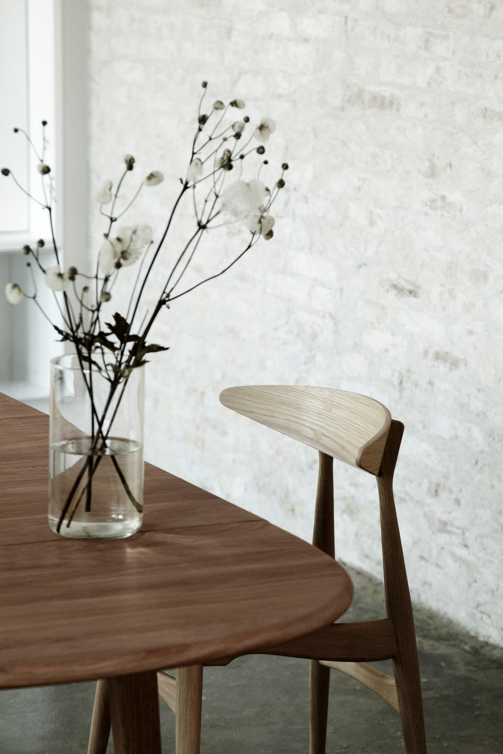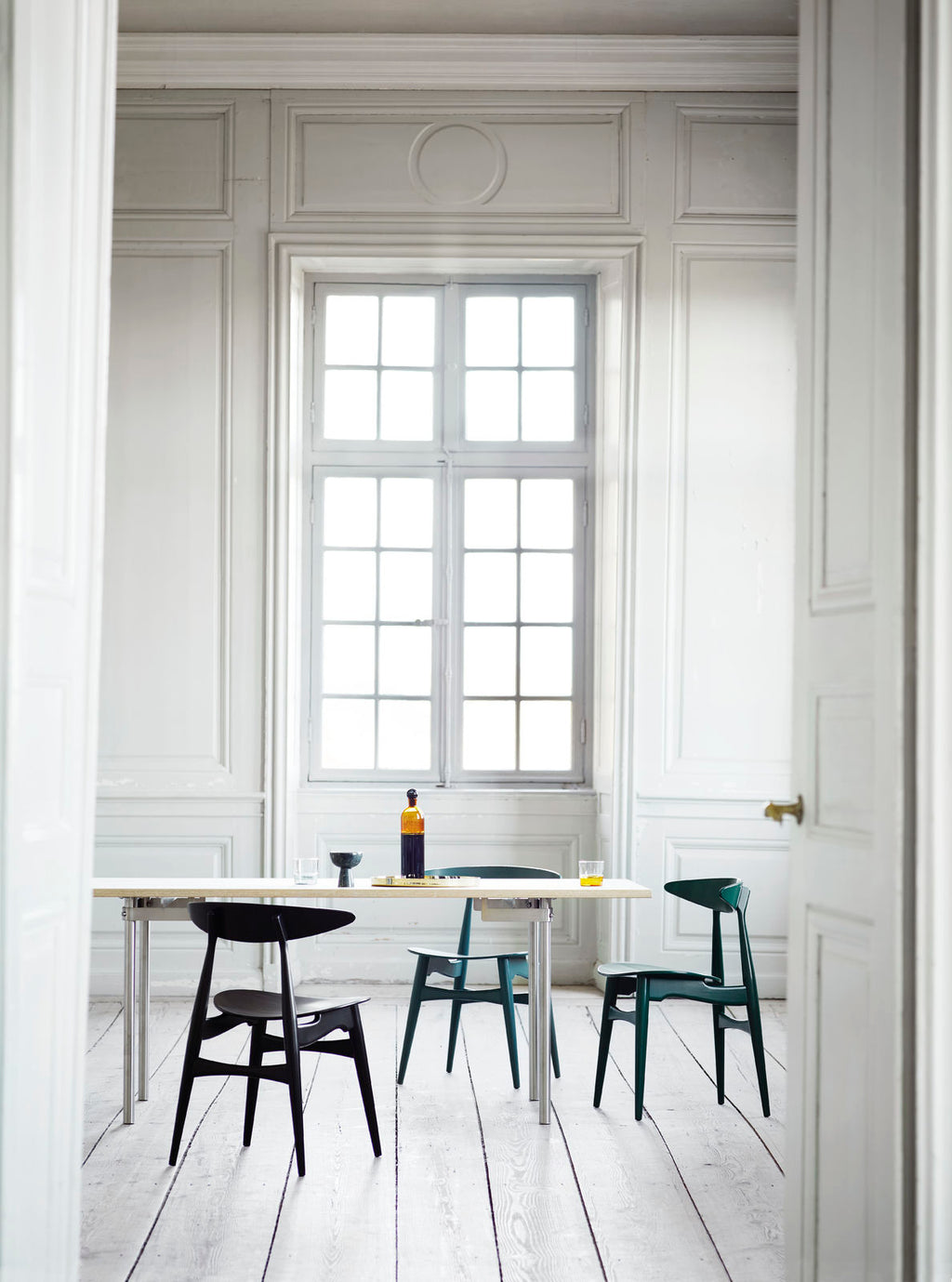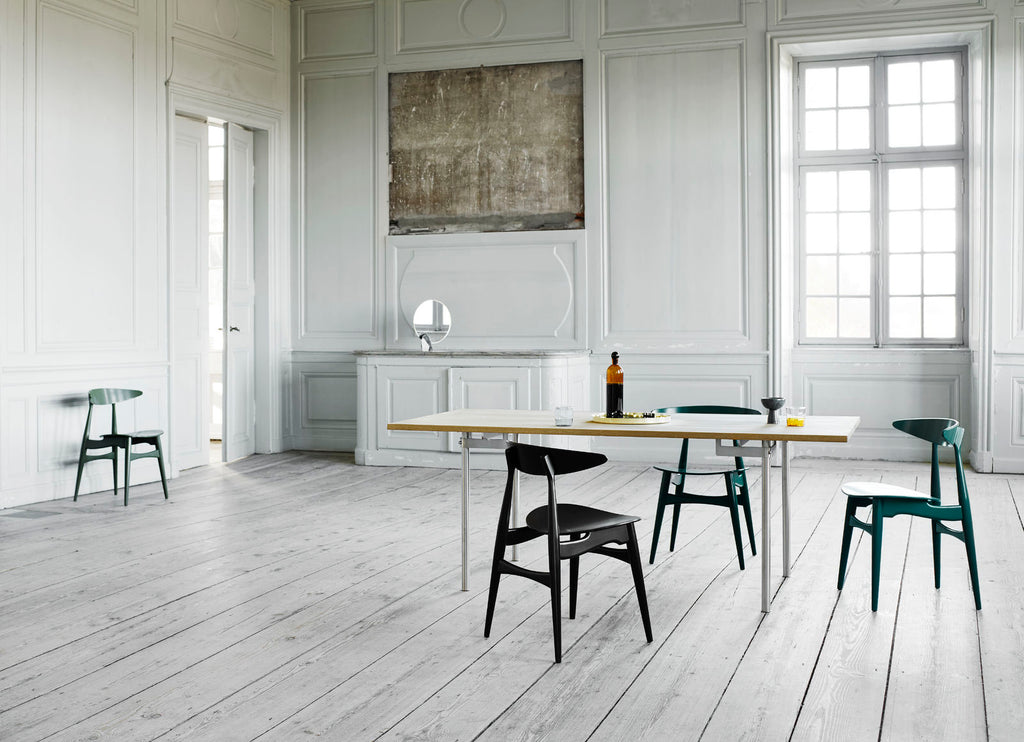 The CH33T has clear references to the clean lines of the 1950s and 1960s and a beautiful wood construction in solid wood. With its warm, human feel, the CH33T is an ideal fit for contemporary interiors. The CH33P version allows for even more comfort with seat upholstery in fabric or leather.
