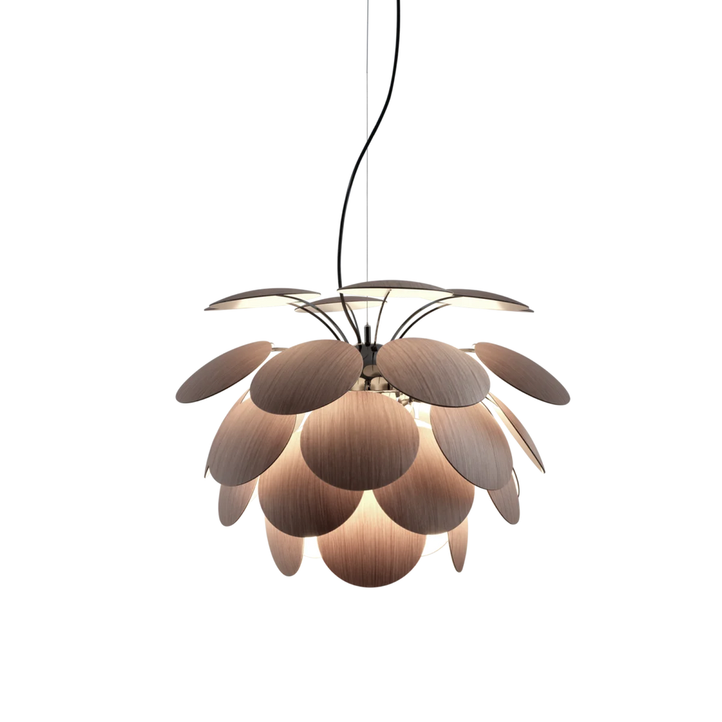 Exuberant even when turned off, the richness of the light issuing from the Discocó lamp provides direct downward illumination along with a dramatic play of lights and soft shadows.