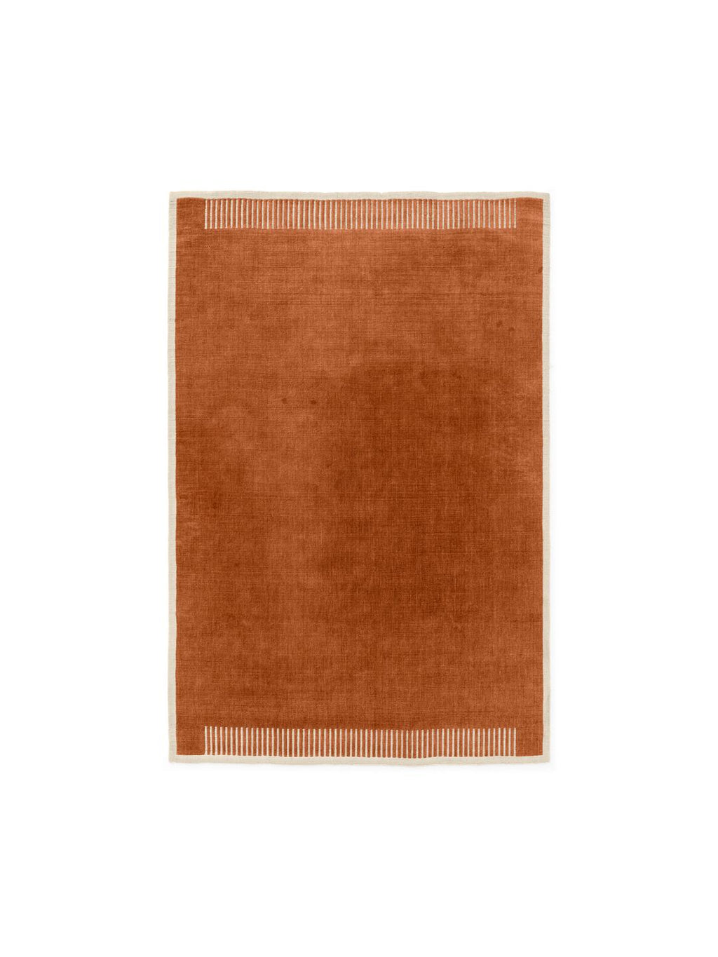 With its luxe cut loop pile, soft and comfortable under foot, the Duomo Rug fuses classical inspiration with contemporary design, paying tribute to architecture. The understated composition of the timeless design weaves together a sense of refinement in wool, detailed with stripes that draw the eye and frame the design. Available in three colours – Limestone Beige, Marble Grey and Terracotta Red, the latter a poignant reference to the iconic red facade of Audo House – and a square or rectangular shape.
