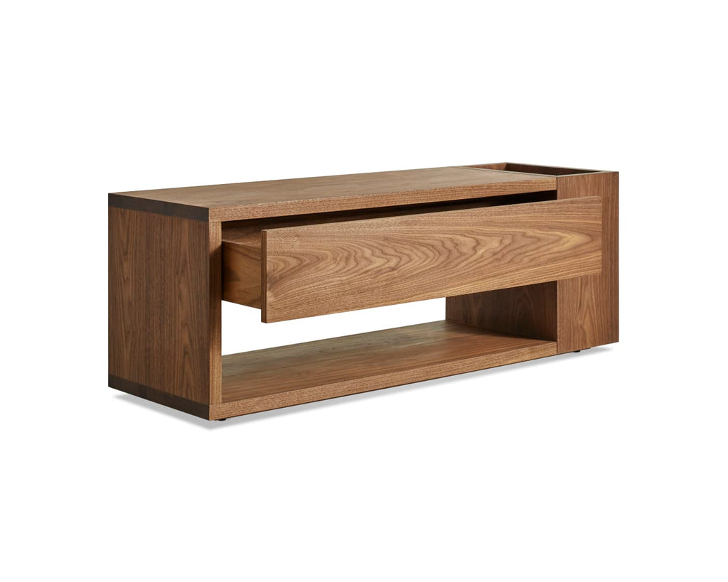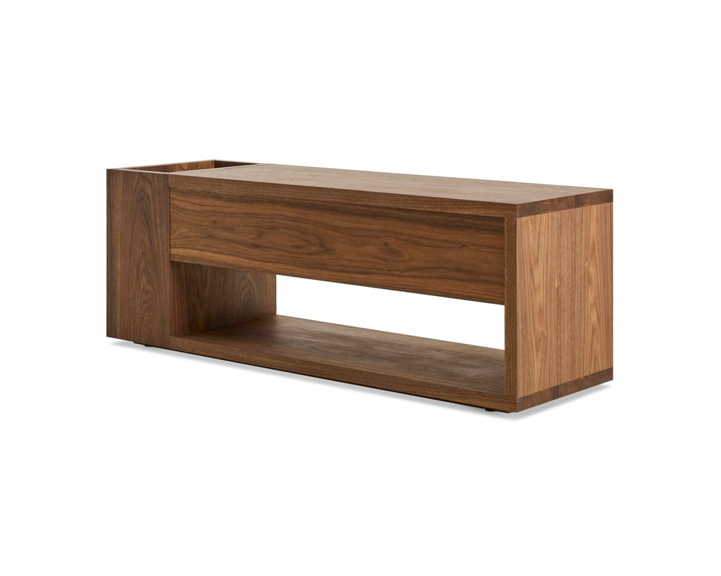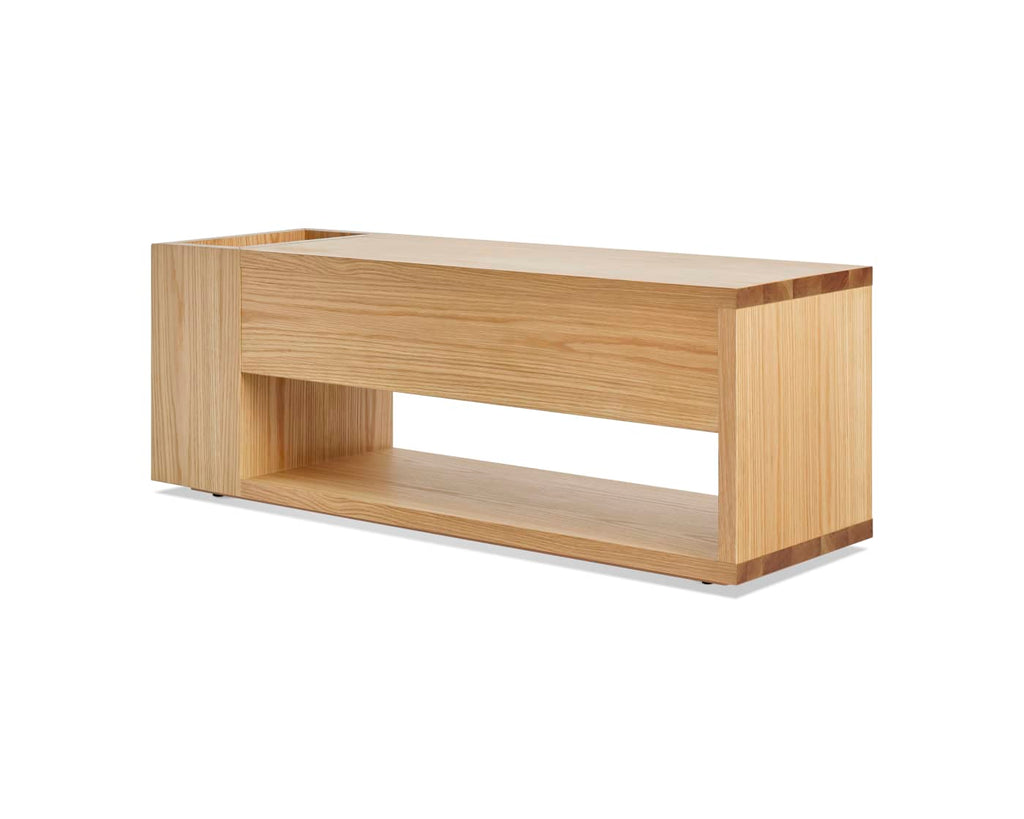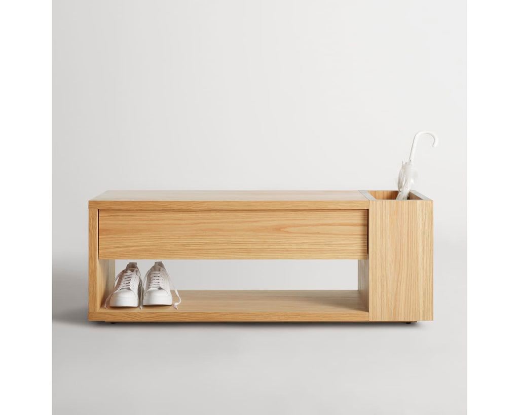 More tricks than a multi-tool, Go Forth has everything you need to get the job done. Discreet side storage, a hidden soft close drawer and warm wood work together to keep the entryway tidy. Sophisticated shoe storage, umbrella repository, time-out corner—it’s whatever you need it to be. Onward!
