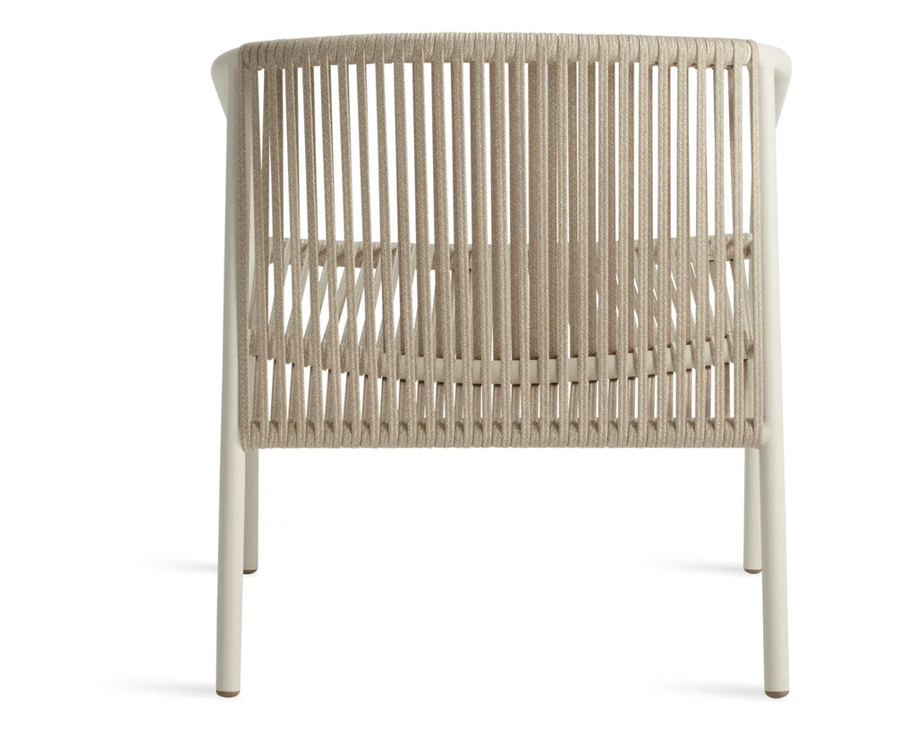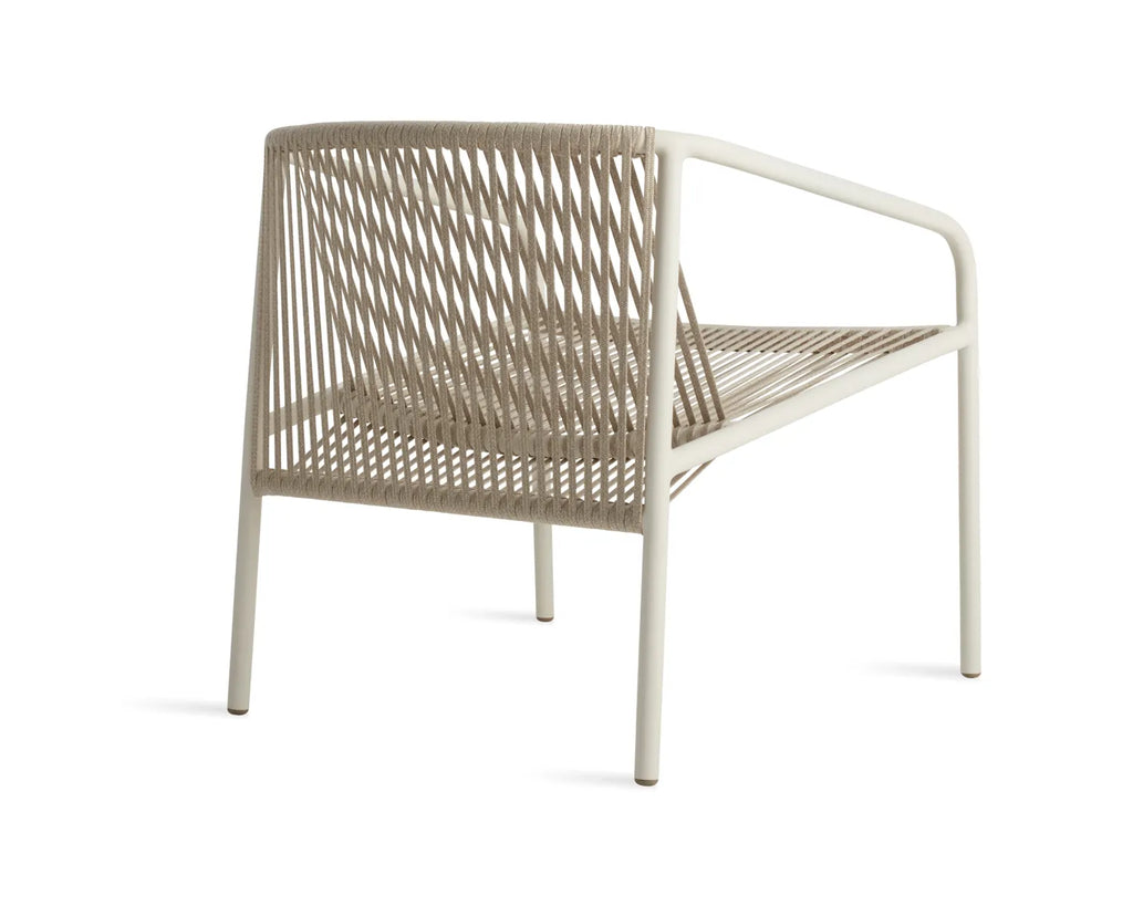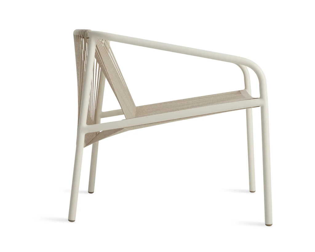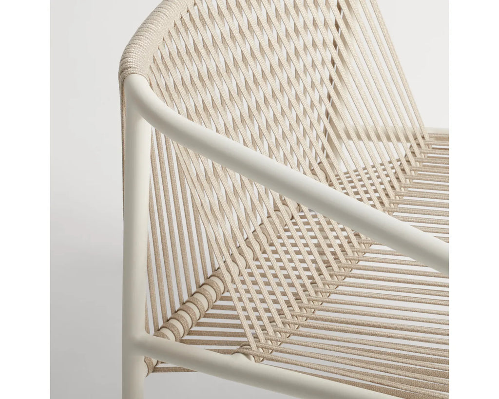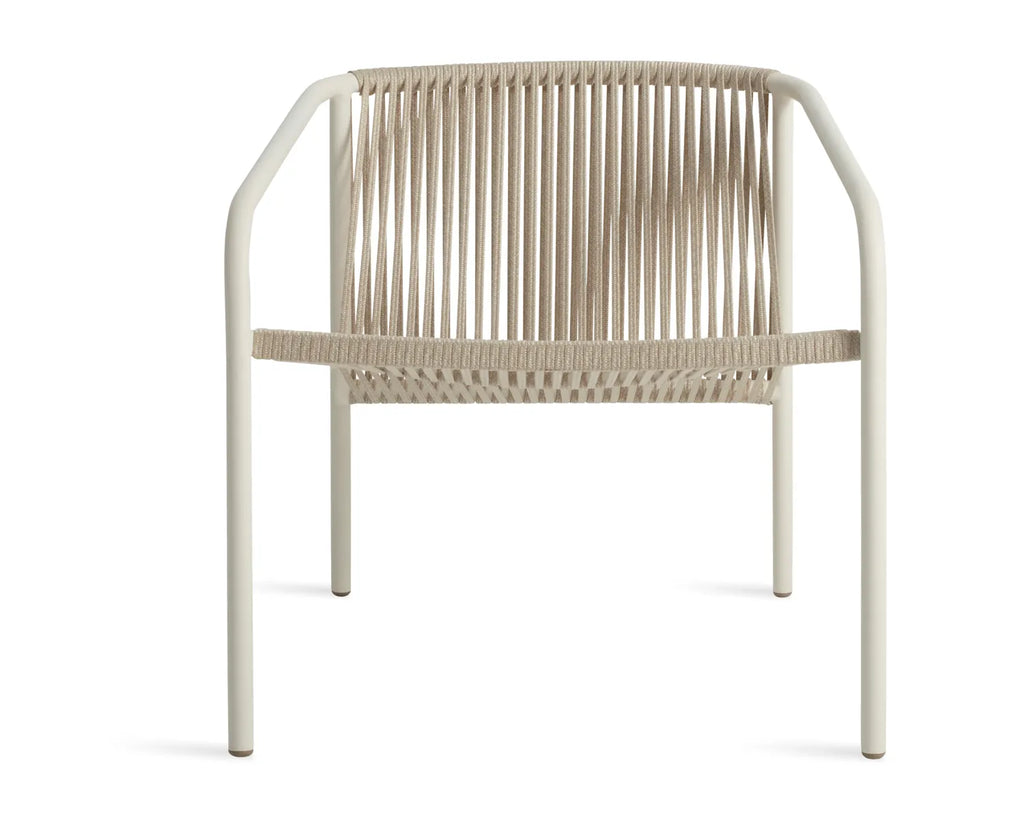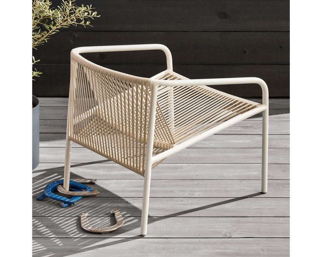 No meditation app needed. All-weather rope weaves around a tubular stainless steel frame forming an architectural silhouette that suspends you in serenity. Fulfills your hammock dreams without the need for trees. Pairs well with flip-flops, French beaches and Sunday mornings. Also available in Dining Chair.