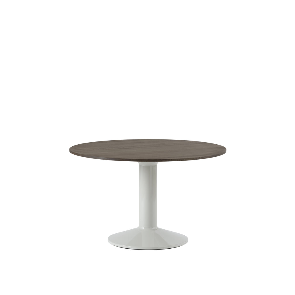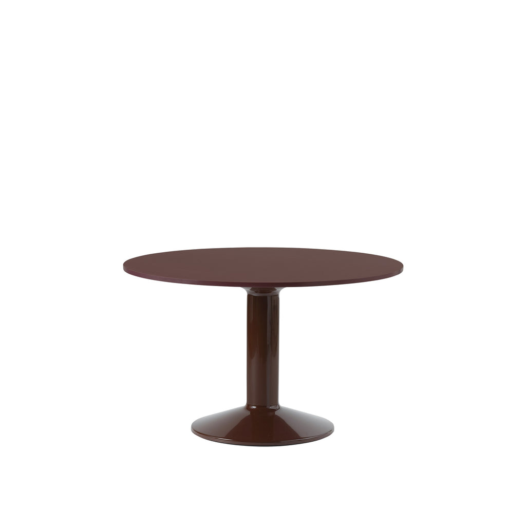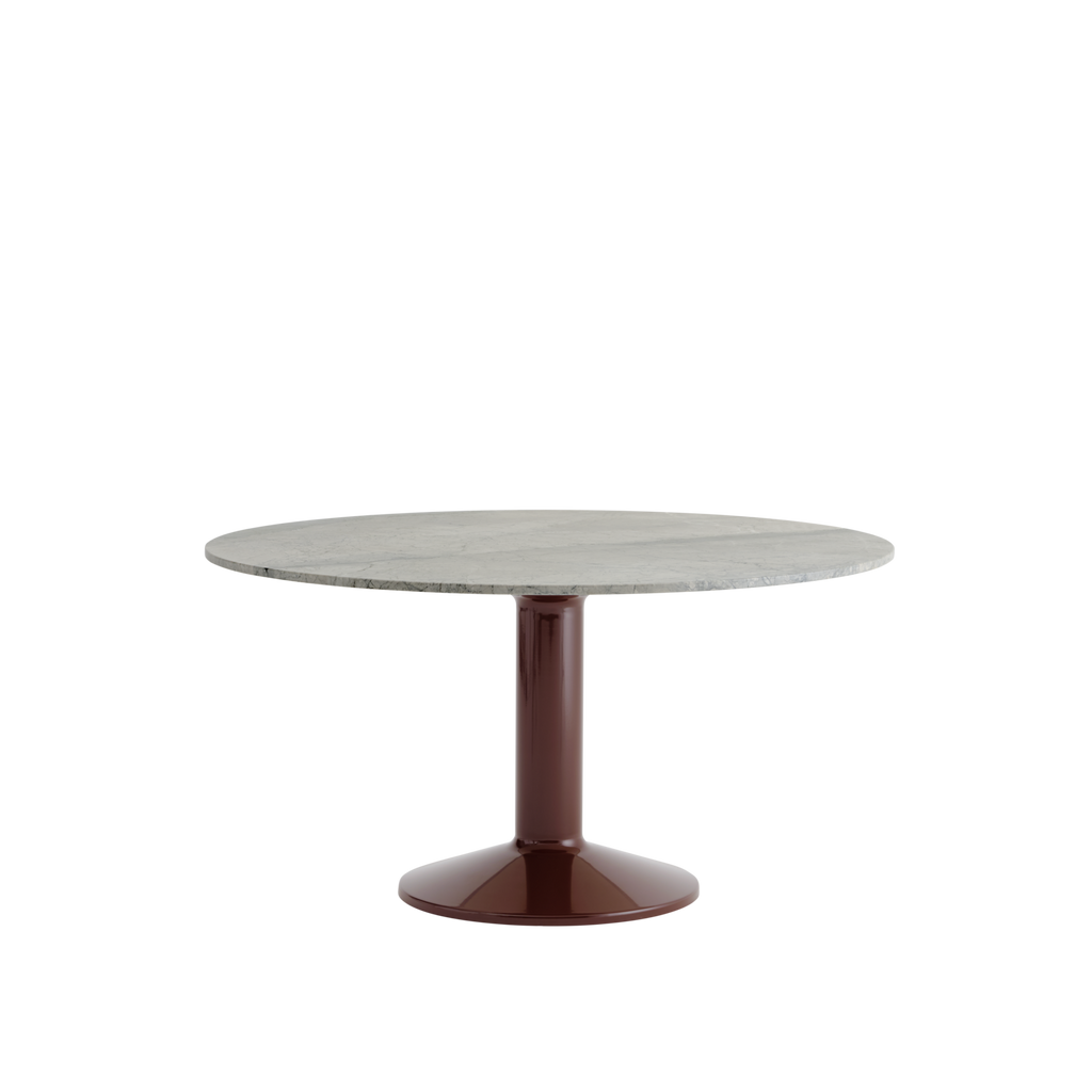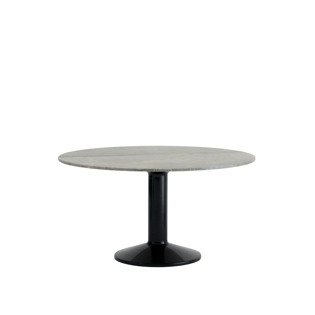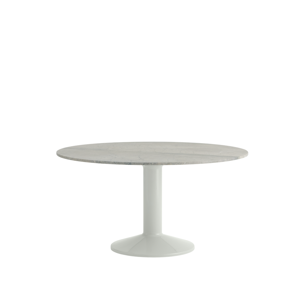 A natural focal point of the home, the Midst Table is a generous, round dining table where friends and family gather — and there is always room to squeeze in one more guest. Its refined silhouette is simple yet characteristic, enhanced by distinct detailing and contrasting materiality; matte solid oak or linoleum on a monolithic base made of spun steel with a durable high gloss finish.