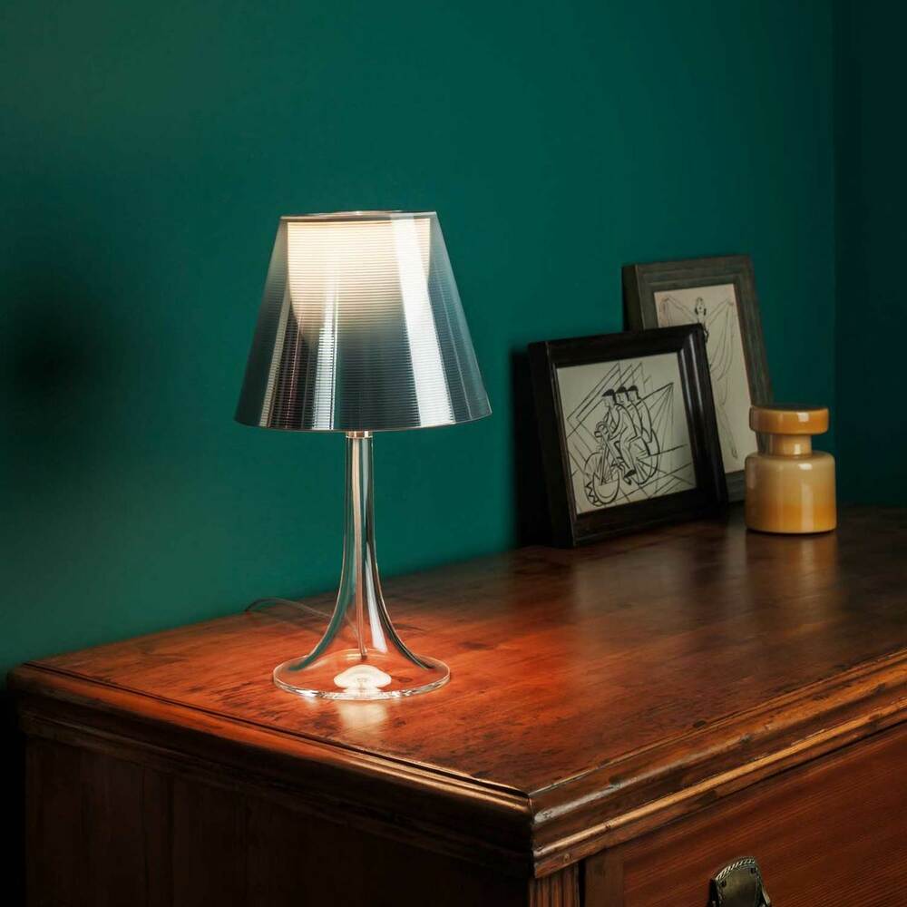 Created by innovative design master Philippe Starck, the Miss K table lamp brings a delightful duality to its work. When unlit, its transparent PC (polycarbonate) outer diffuser—which is internally finished with a high vacuum aluminization process—rests with a sleek metallic tint. When the lamp is lit, the transparency of the diffuser is evident and it appears as if you’re looking at an x-ray of a lamp.