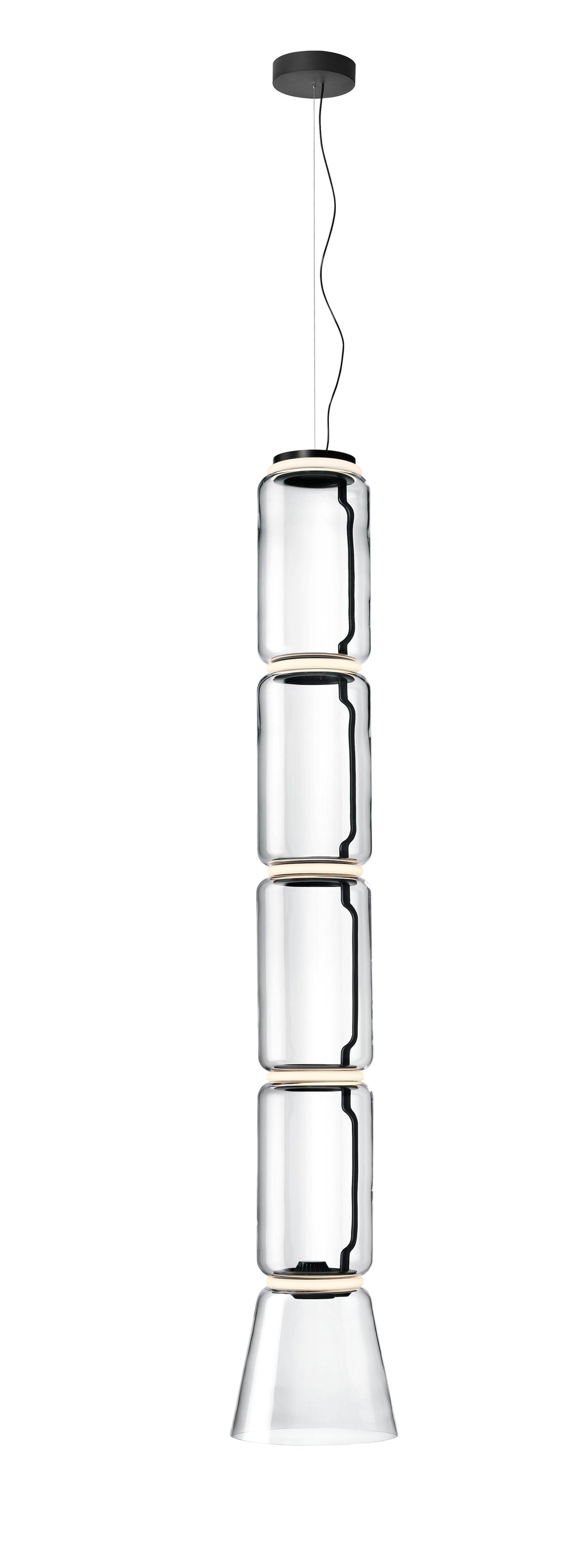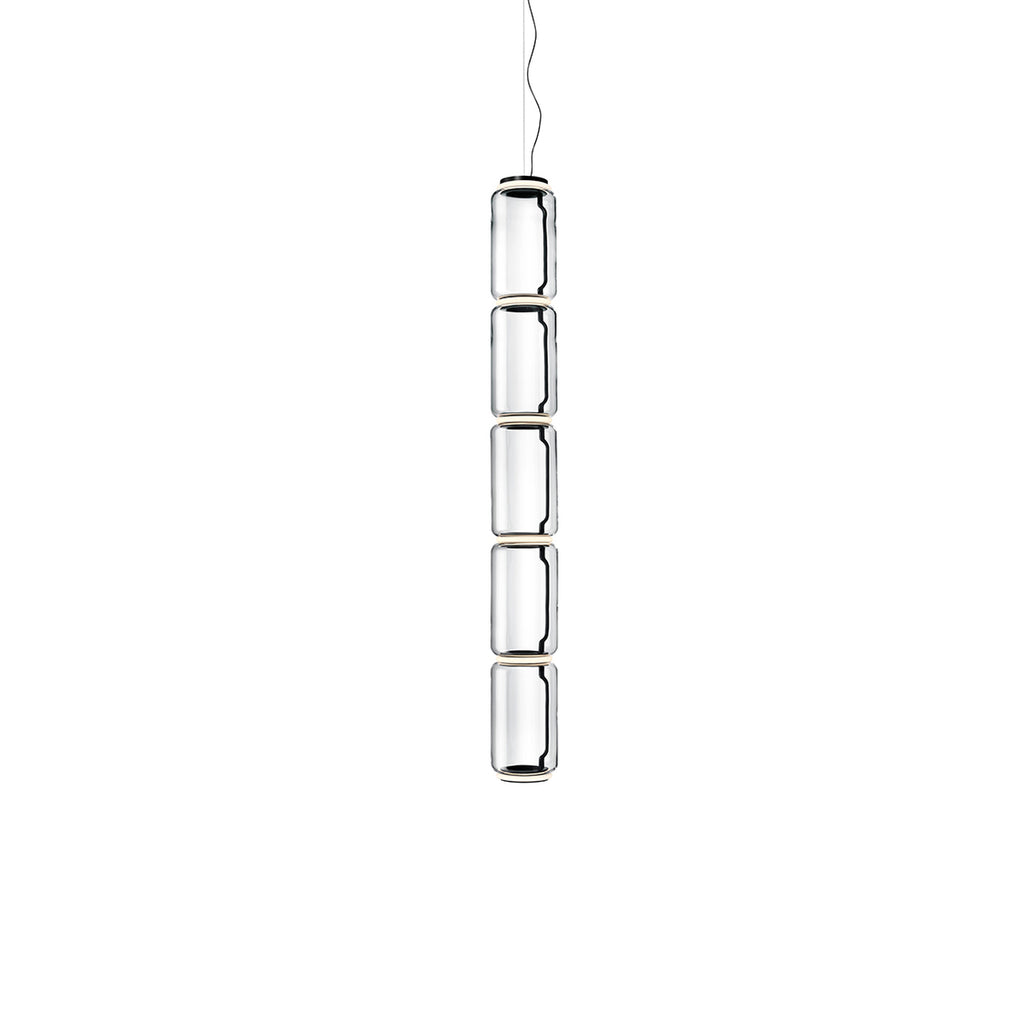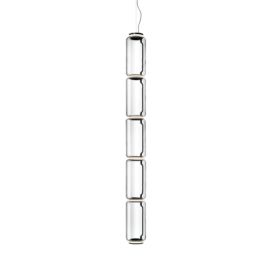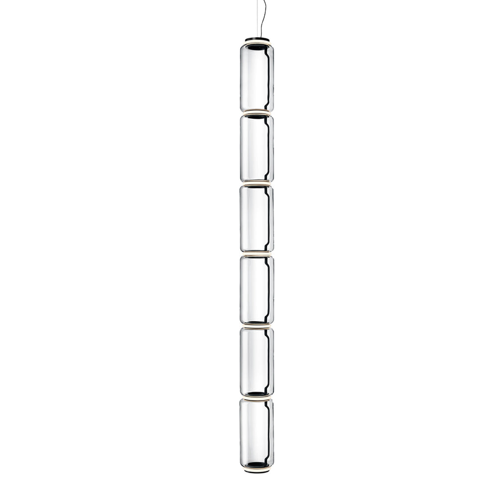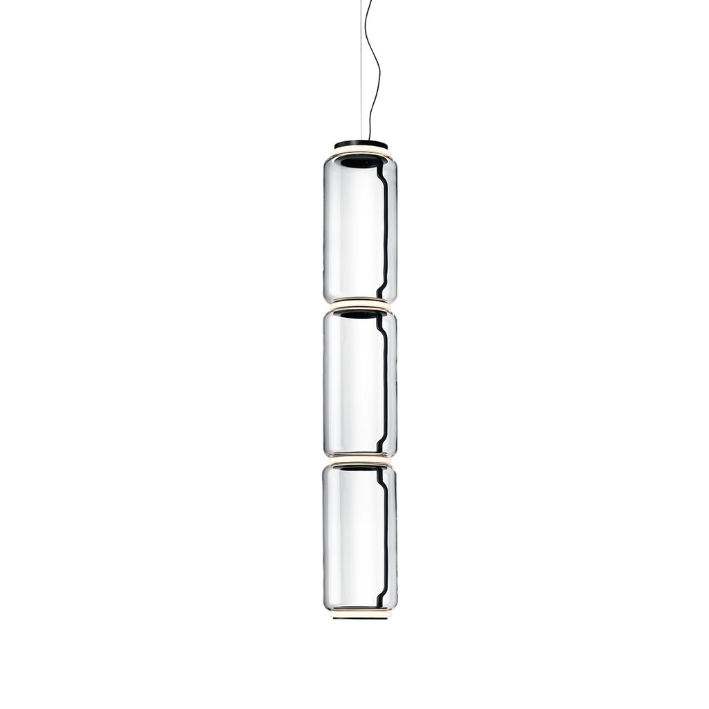 Noctambule LED dimmable pendant light short cylinders by FLOS is the latest in the series of inventive lighting fixtures envisioned and executed by master designer Konstantin Grcic. This groundbreaking lighting system is made up of various units that blend together to provide illumination at the intersection between every module. Offered in a variety of artistic designs, Noctambule’s dimmer can be operated from its power unit within the ceiling rose, or controlled using the pedal-enabled panel in its power cord.