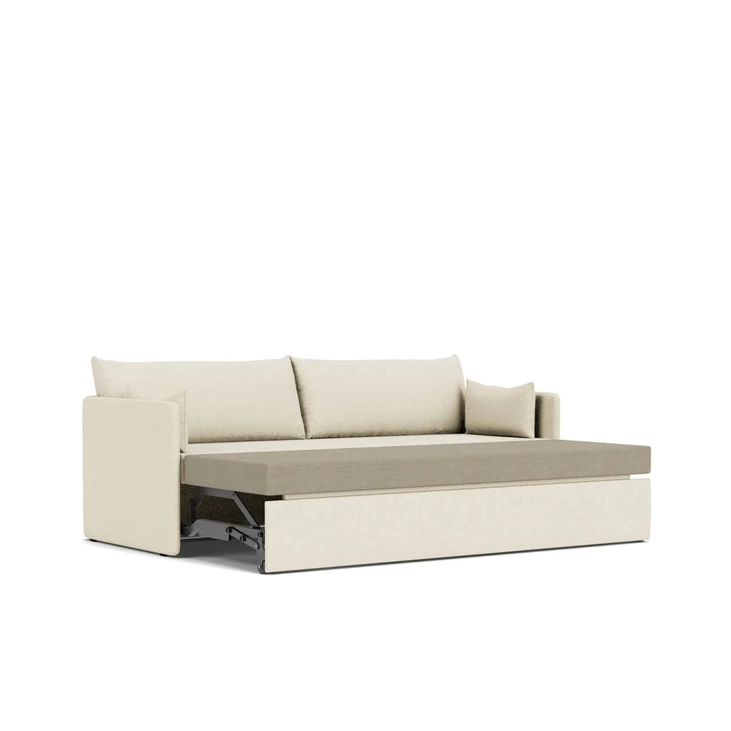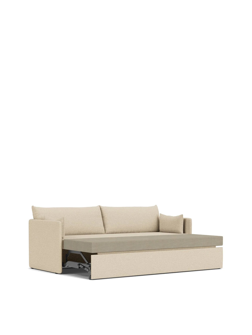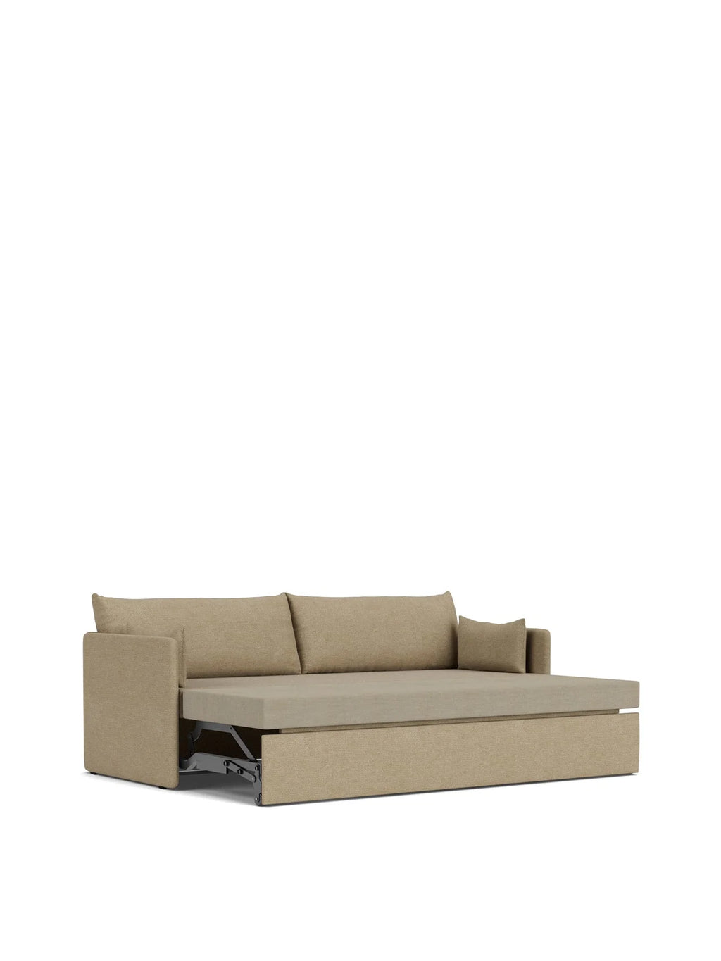 Versatility is at the heart of the Offset Sofa Bed, which has the ability to transition from an elegant sofa to a comfortable bed. Ideal for accommodating guests or maximizing space in multi-purpose rooms, it effortlessly adapts to changing needs. Balancing support with softness, the design embodies simplicity with its clean, understated silhouette, designed from a set of paradoxes: substantial yet delicate in appearance and architectural yet inviting and relaxed.