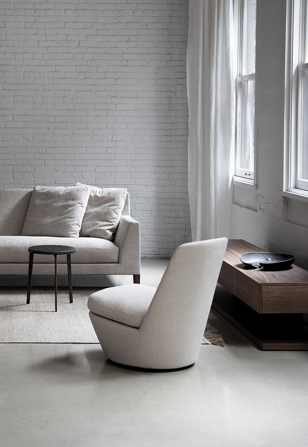The Pre chair is a new take on an old idea. It is modelled on a traditional slipper chair, but it has been integrated into the “turn” series with its 360 degree smooth swivel mechanism and under-cut base. A perfect little chair for any space thanks to its crisp and charming presence. Additional removable covers available.
