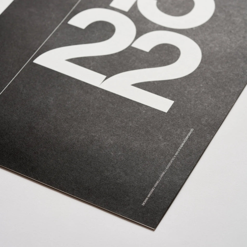 Vignelli’s design is simple yet bold, litho-printed on large 122x92cm sheets bound together by three hand-punched eyelets. The pages alternate in colour, with odd months laid out as black text on white, and even as white text on black. Sheets are detachable, designed to be removed at the end of each month. Previous months’ sheets make excellent wrapping paper.