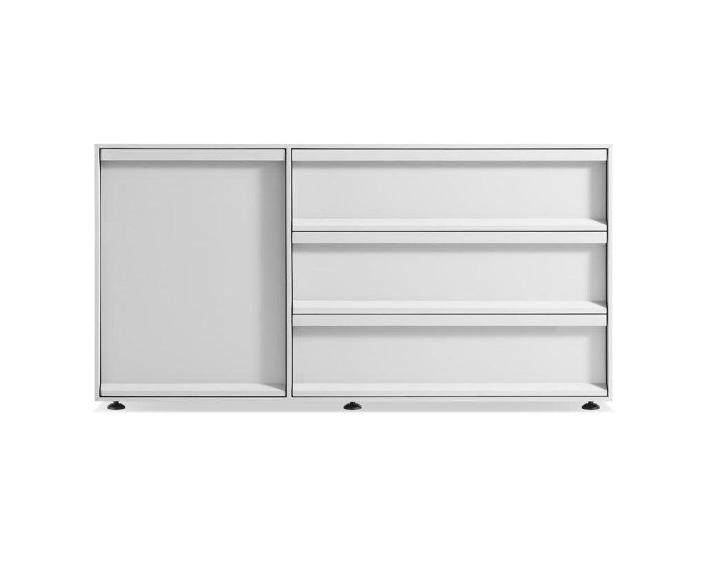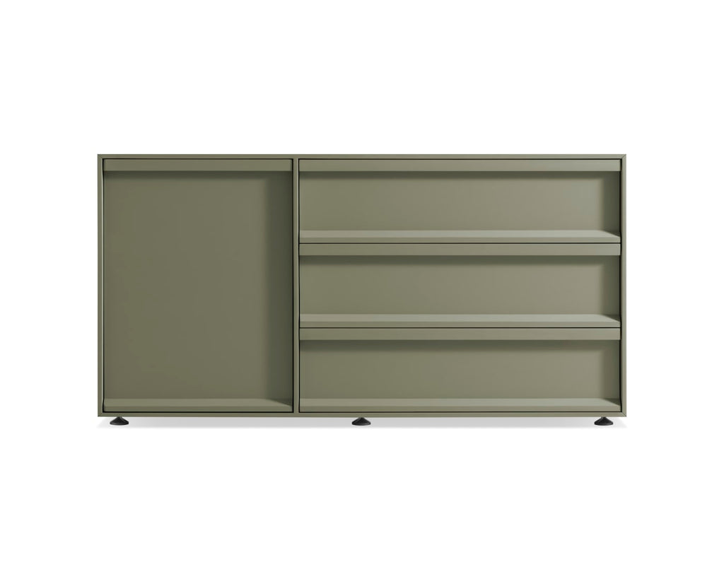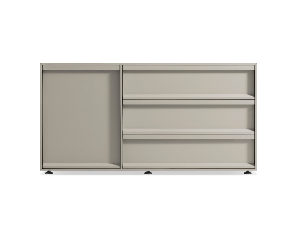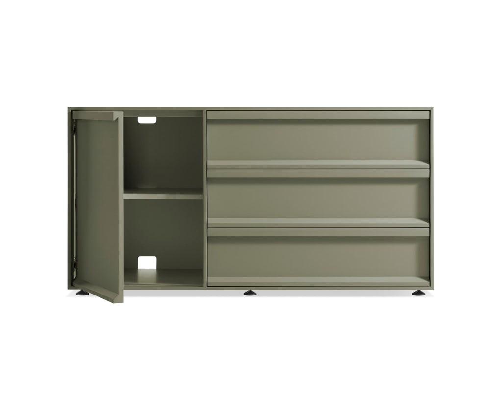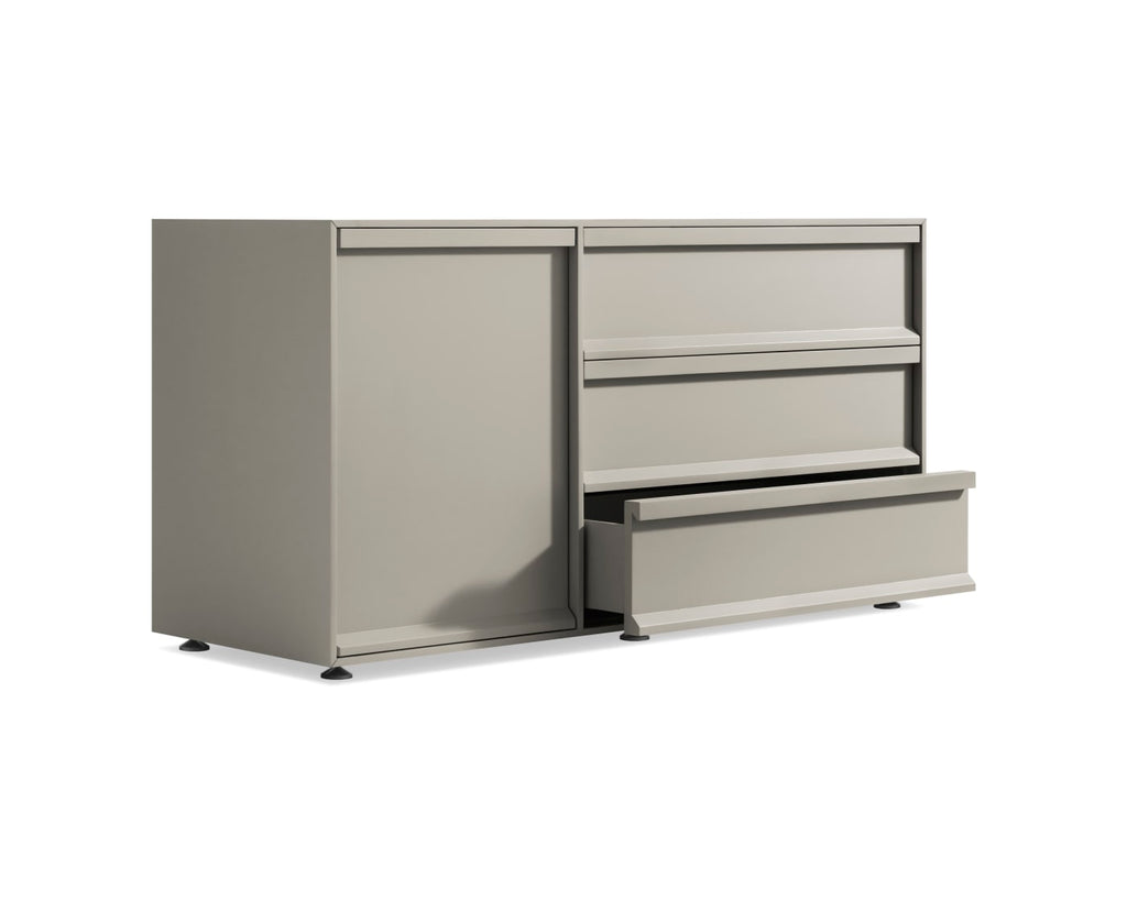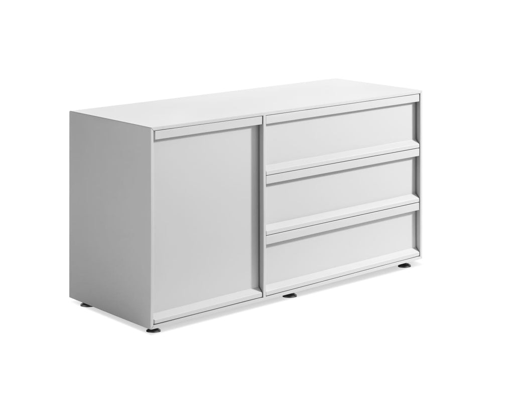 Tranquil staple. Crisp lines and unassuming relief pulls conspire to keep the action behind soft close drawers. A matte painted finish in muted tones delivers serenity and sets up a streamlined storage solution for the living room, bedroom and office.