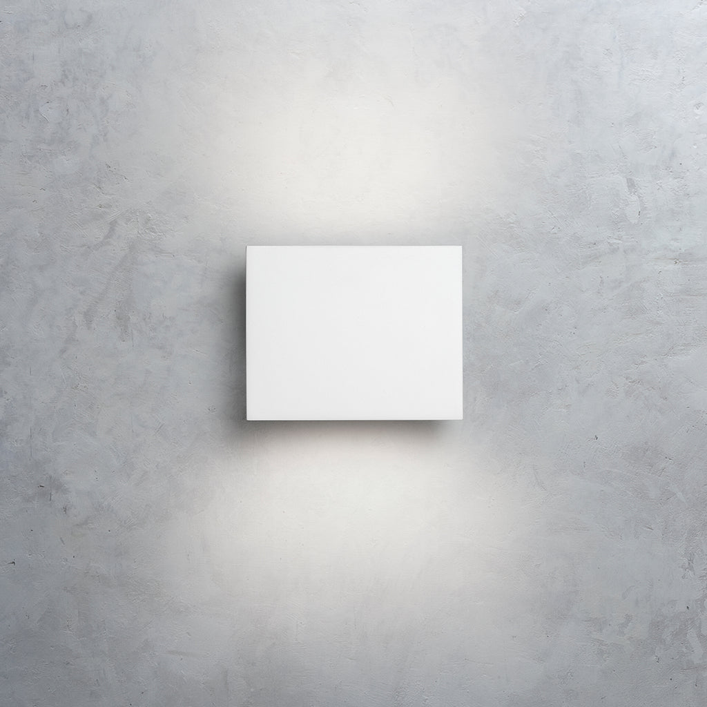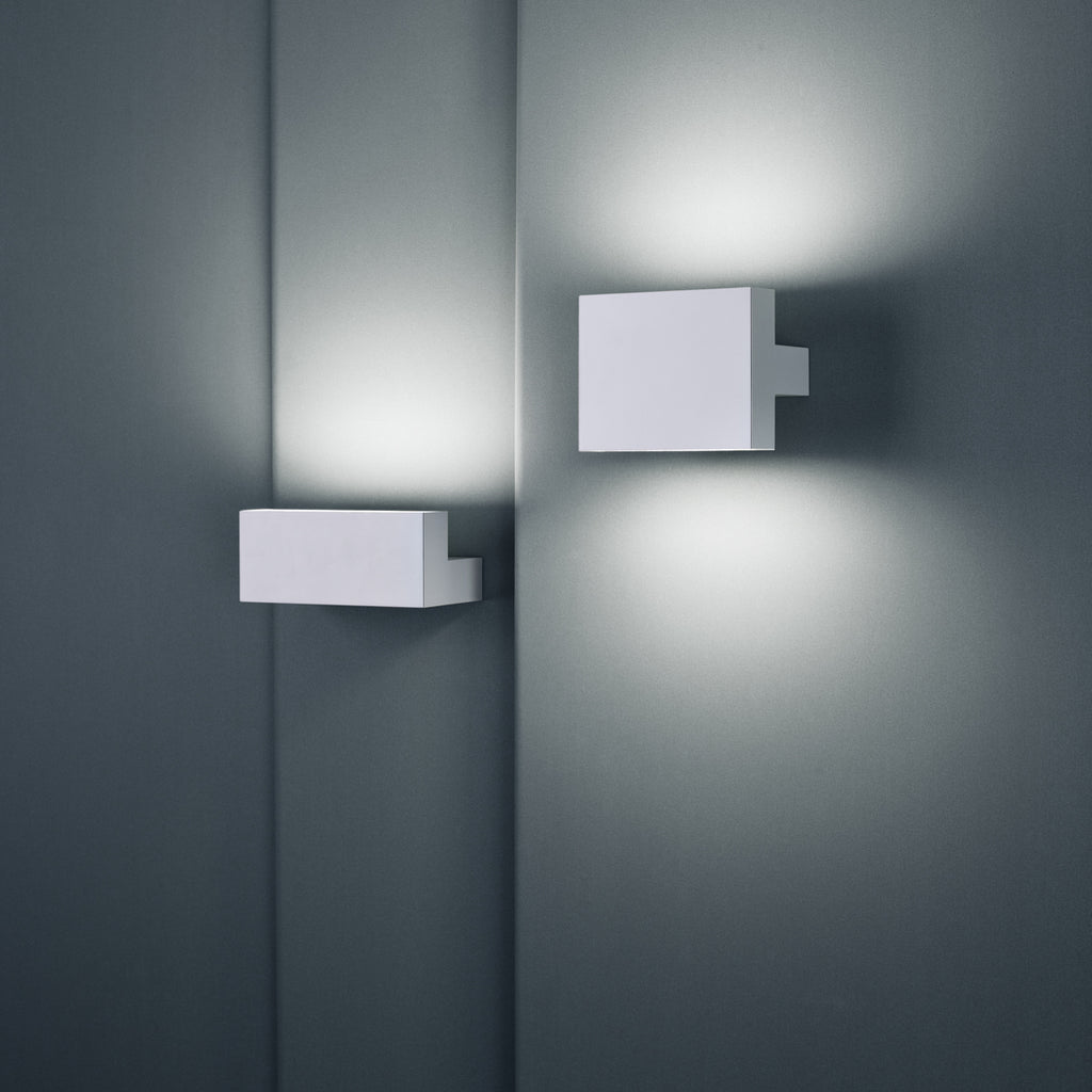 Designed by Piero Lissoni in 2011, the Tight Light plays on the perspective of size with outstanding results. The main body of this wall lamp is made of white painted extruded aluminum. The lateral friezes are die-cast aluminum and have been rotated to 45-degrees using digital control in order to flow seamlessly with the light’s body. The injection-printed PMMA (Polymethyl methacrylate) diffusers have a photo-engraved finish and the attachment is PA66. The junction box is covered with a back plate. The profile is shaped like the letter "T" for "Tight Light.”