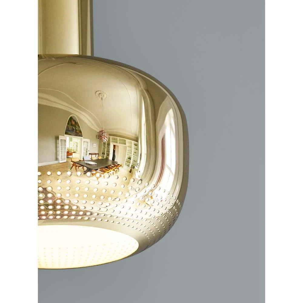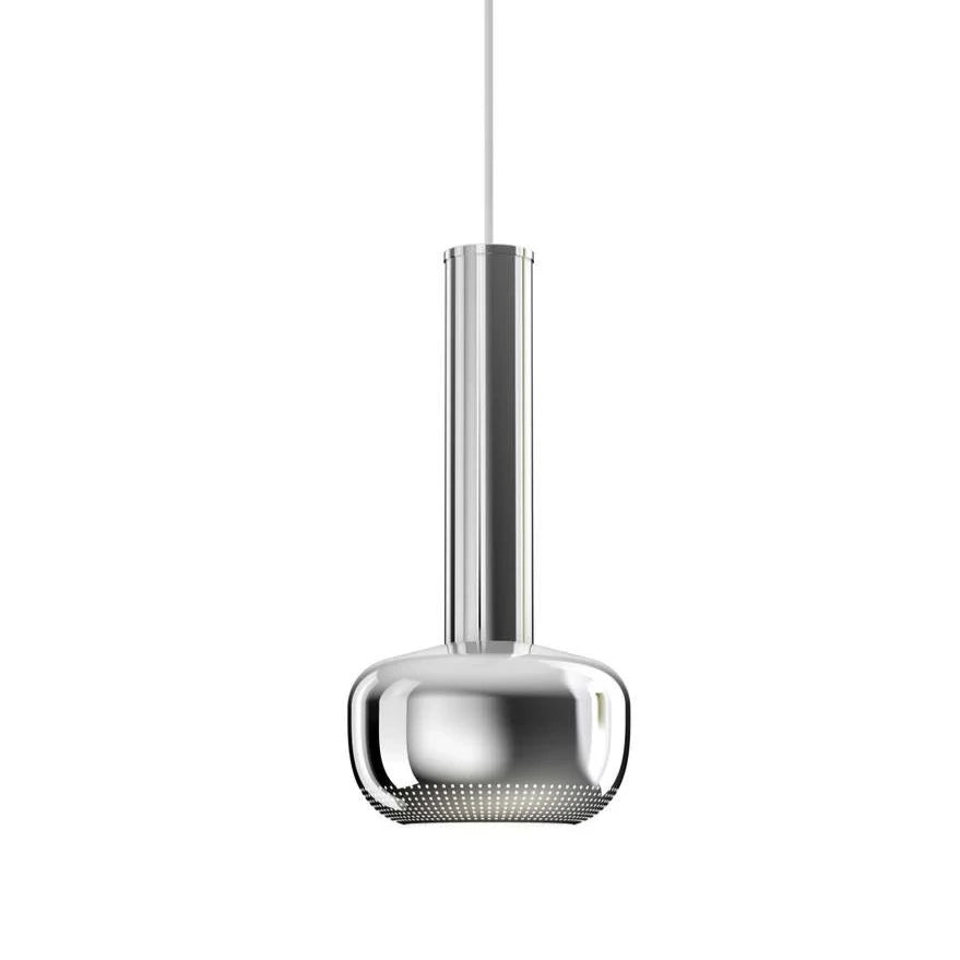The pendant emits downward directed glare-free light. The radial perforation pattern around the opening creates a softer transition between light and darkness. The perforations create a soft beautiful pattern of light both on the shade and on the surrounding surfaces.